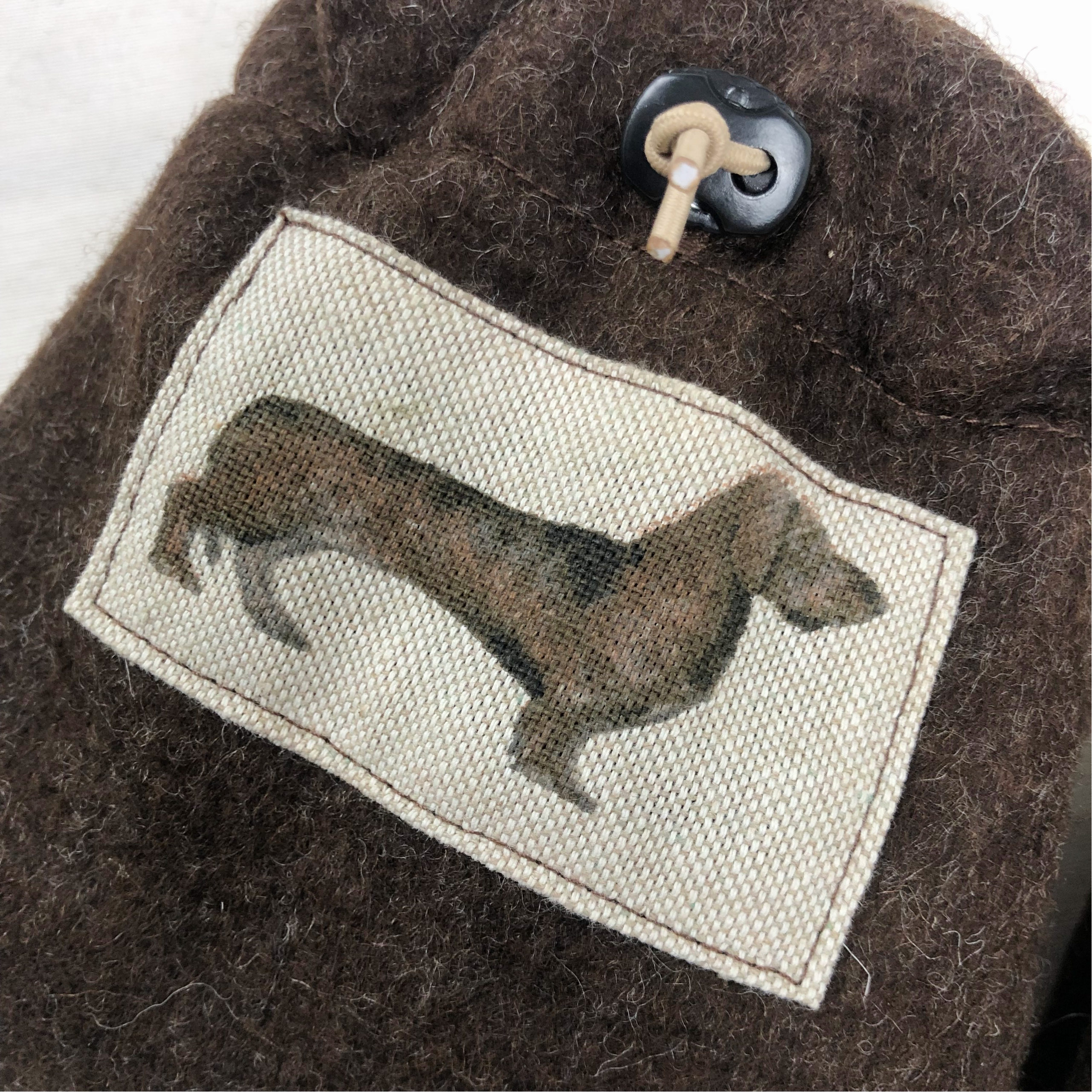 Außen ist der Futterbeutel aus Wollfilz gefertigt – das Innenfutter ist aus robustem und wasserabweisendem Cordura® – bei Bedarf kann das Futter einfach nach außen gestülpt und abgewaschen werden. Mit dem Metall-Karabiner ist er schnell an einer Gürtelschlaufe befestigt.
