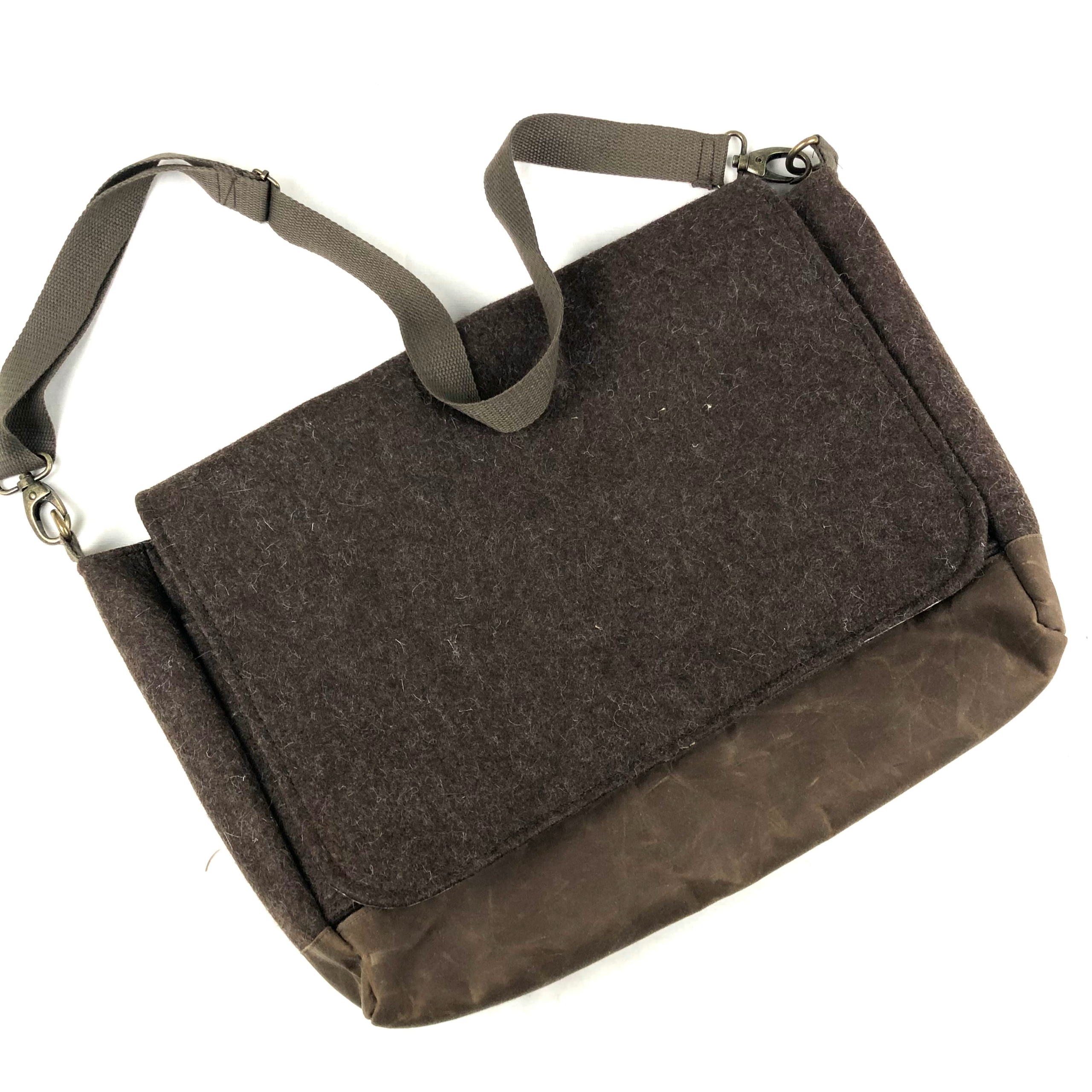 Umhängetasche aus Wollfilz, dunkelbraun meliert (Einzelstück)